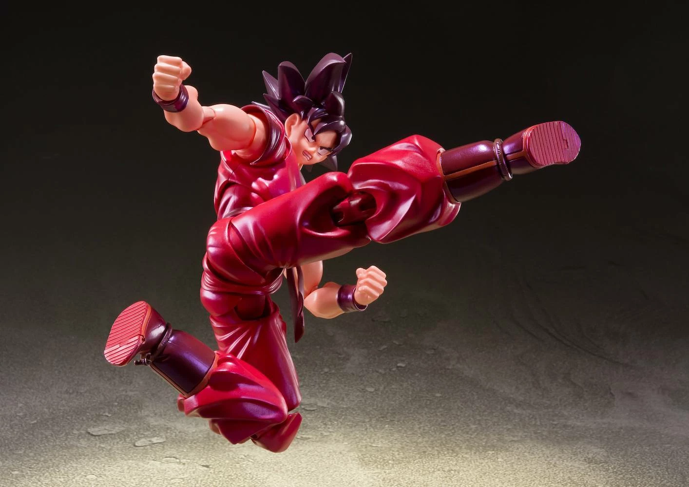 A figure of Son Goku in his epic “Kaioh-ken” form! Finished with beautiful pearlescent parts to accentuate this dynamic move’s power, you can recreate battles with Captain Ginyu, Vegeta, and Frieza (Sold separately)! The figure includes an optional head, two optional expression parts, and two pairs of optional hands.