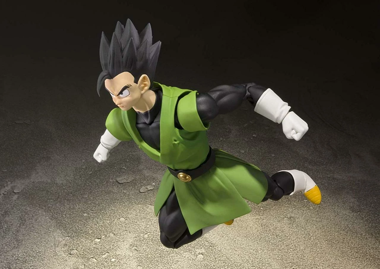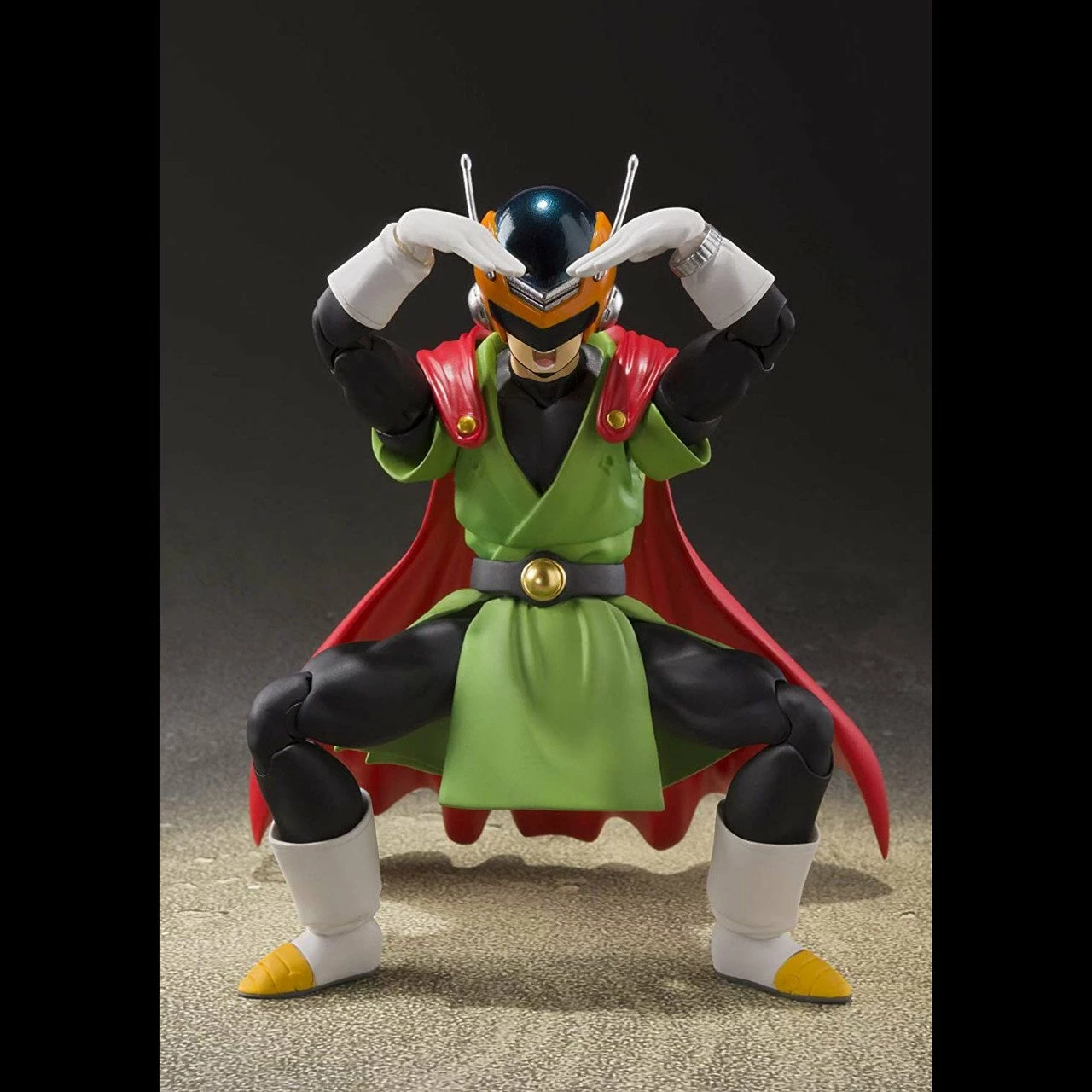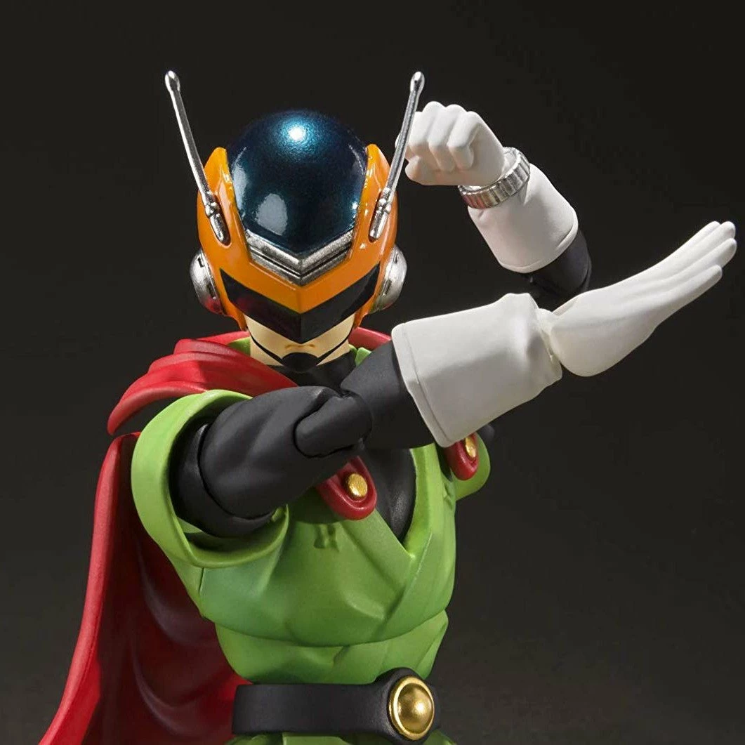 “I am Great Saiyaman, a hero for justice!” This special set includes an optional mouth, a turban, Son Gohan, and a SS2 Son Gohan optional head! The cape can be attached on the left shoulder for dramatic displays. The set includes four pairs of optional hands, one optional left arm, one optional mouth. three optional heads, a cape, and two optional antenna.