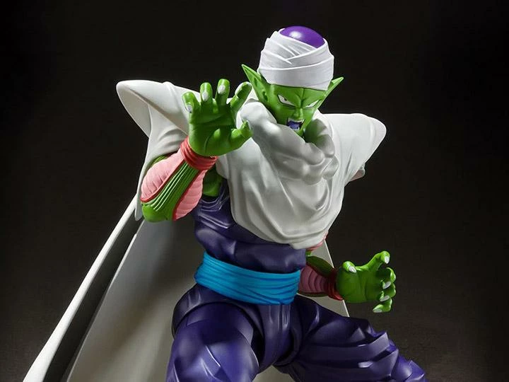 From the popular anime and manga series Dragon Ball Z, the figure of Piccolo the Namekian joins the SHFiguarts line! Piccolo comes with interchangeable facial expressions, interchangeable hands, a headsculpt without his hat, plus his signature cloak.