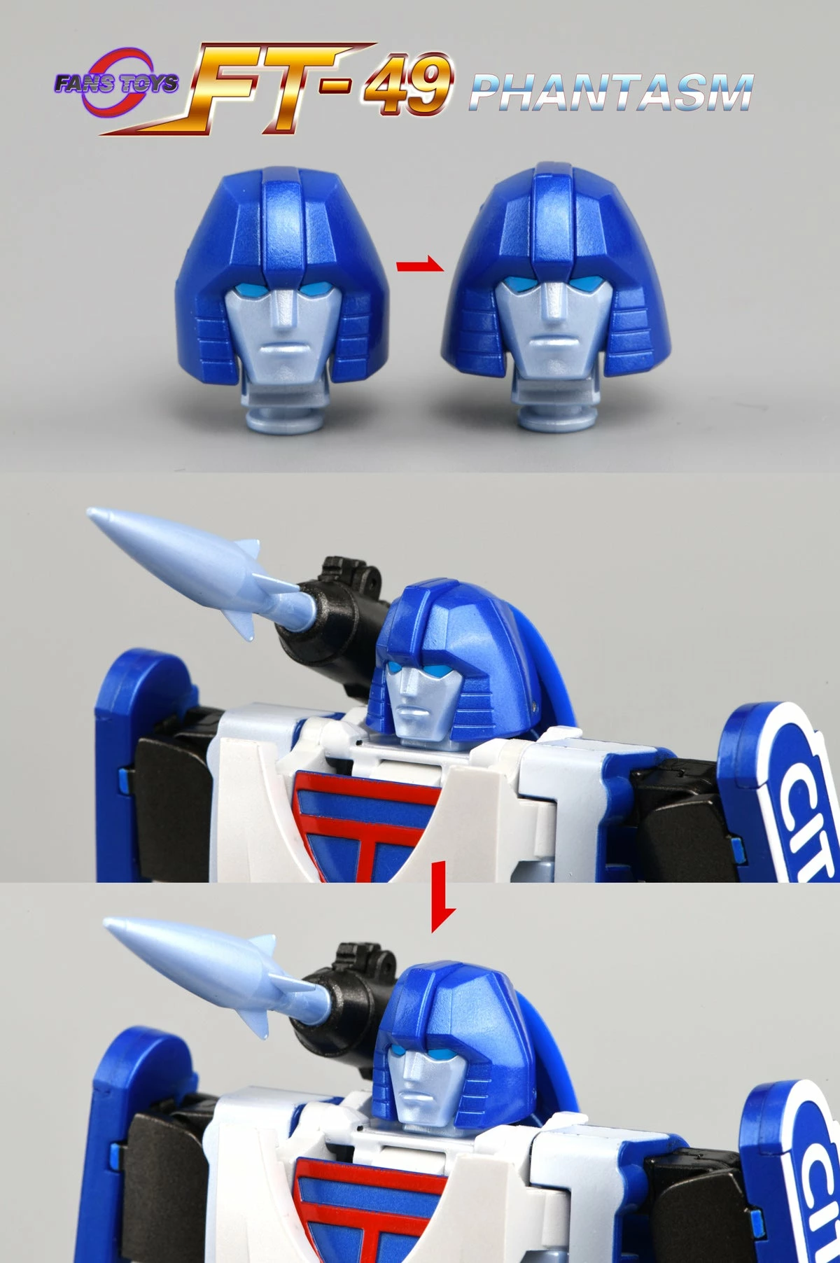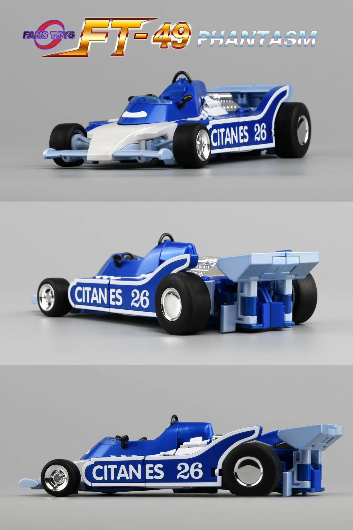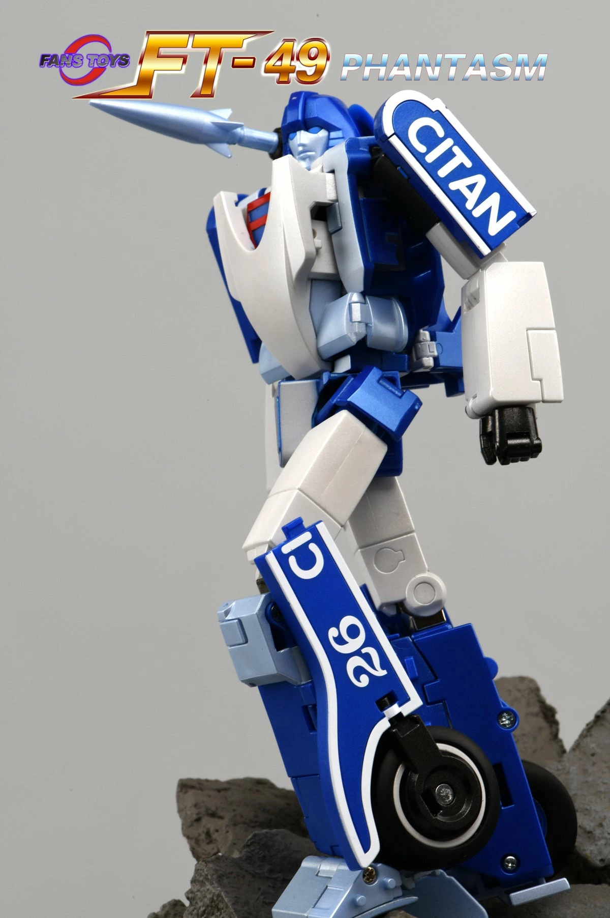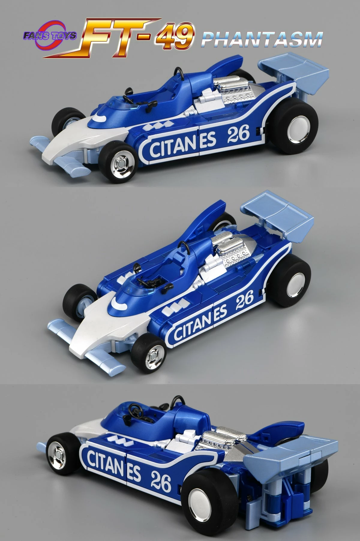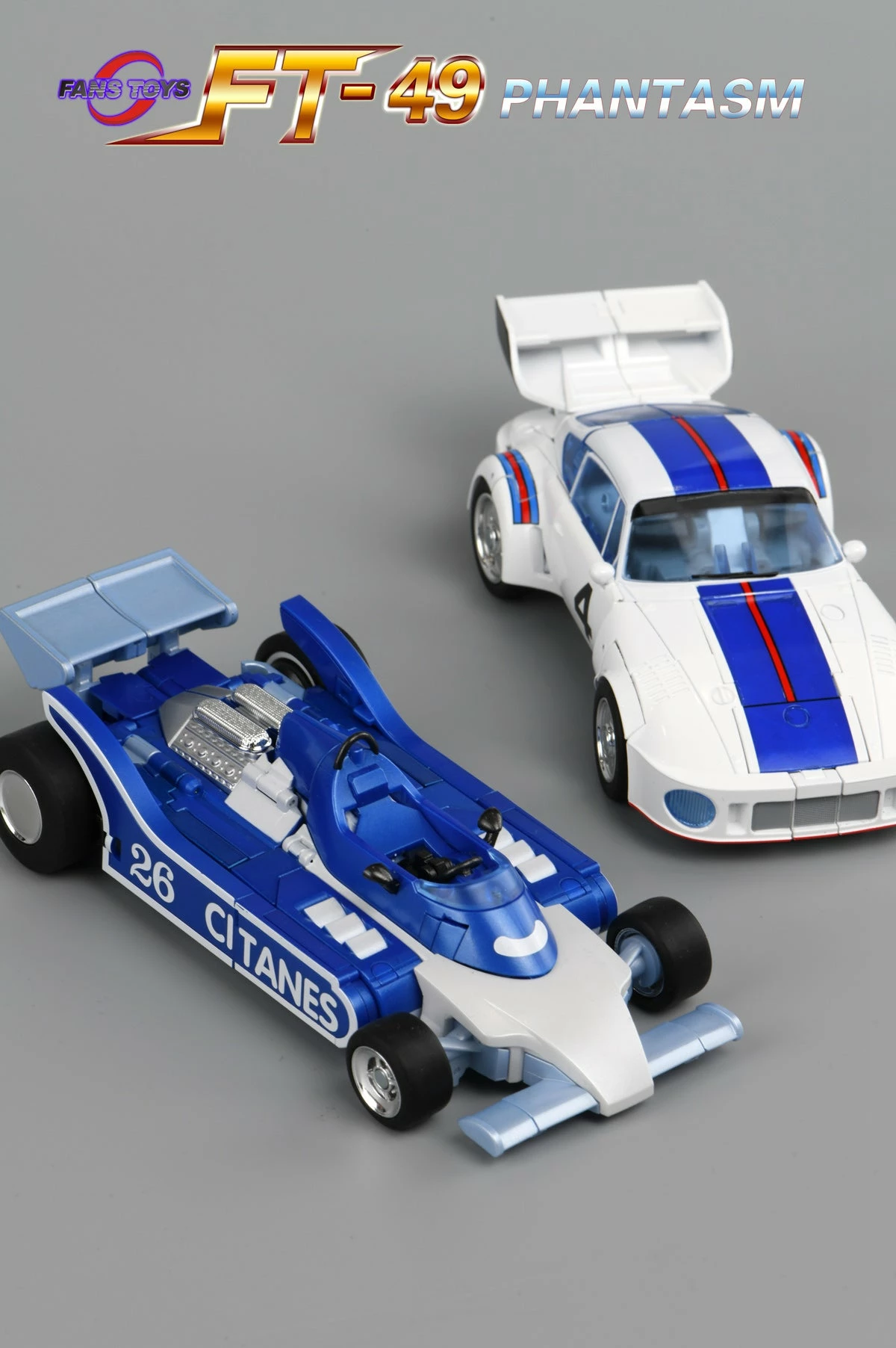 Fans Toys FT-49 Phantasm is a highly detailed figure with die-cast and plastic parts. Phantasm converts from a race car to robot and back. Figure comes with weapons and accessories.