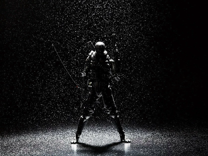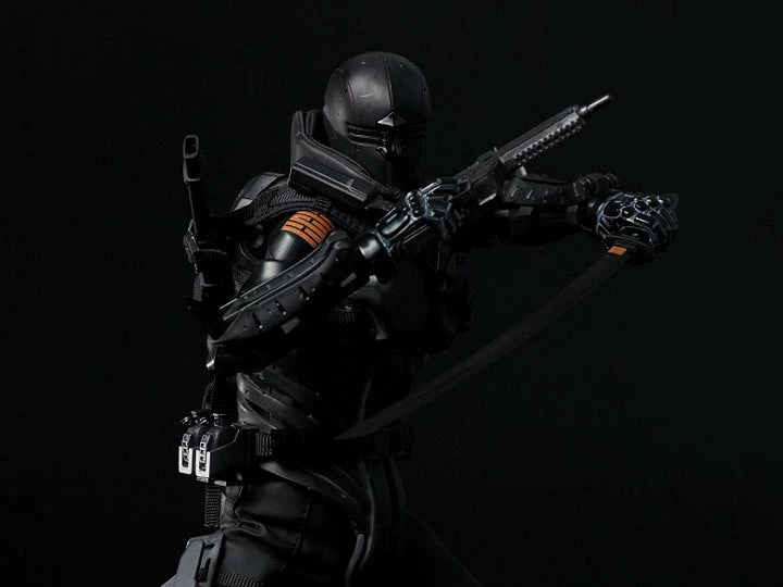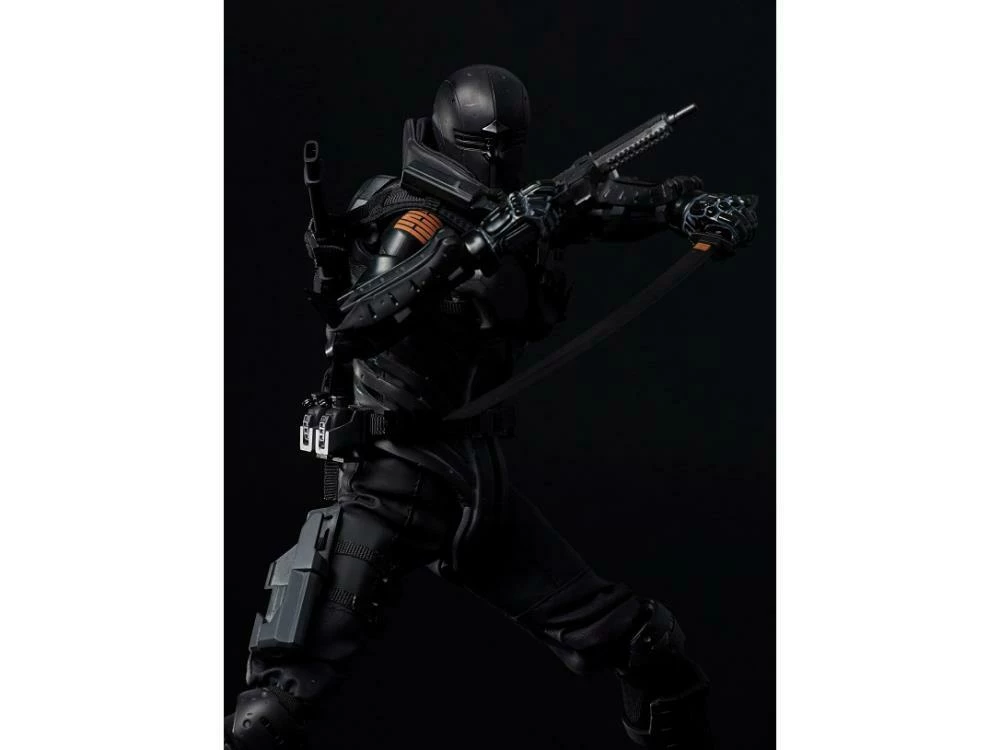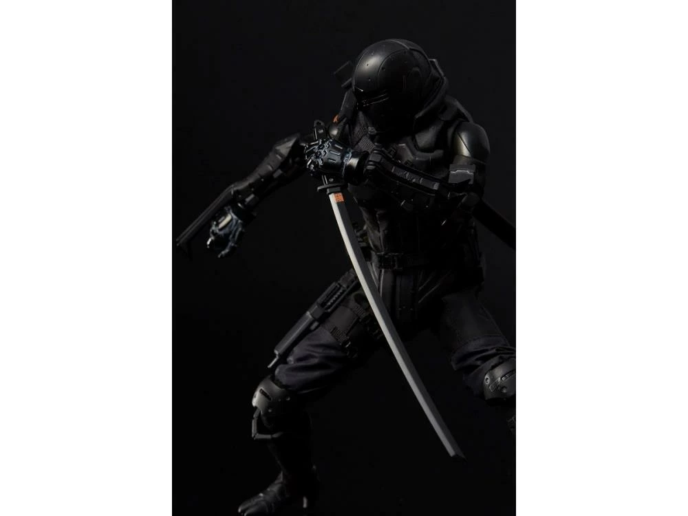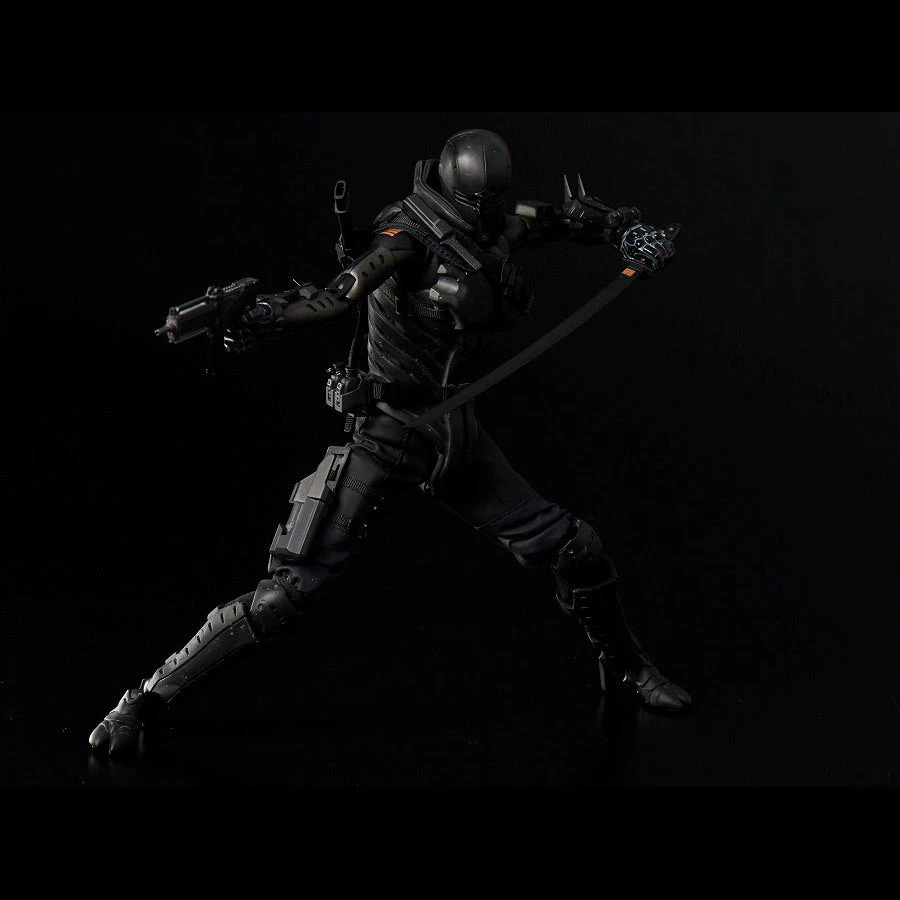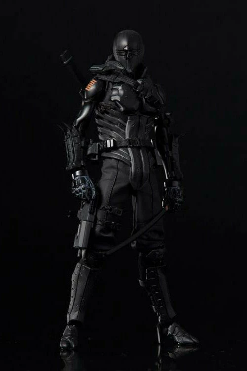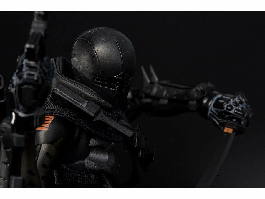 The figure was developed using the Synthetic Human body made from 1000toys. Snake Eyes features actual clothing and armor over his articulated body.