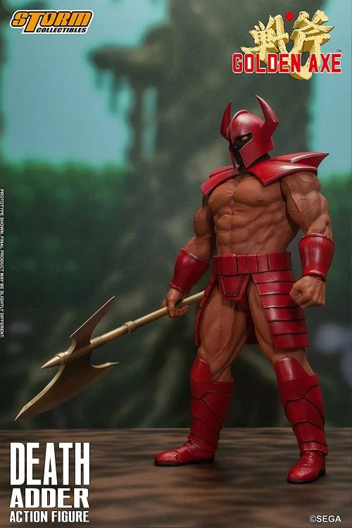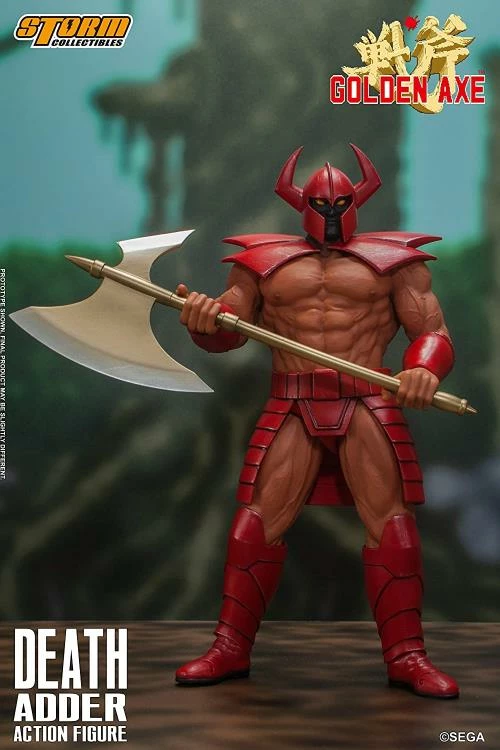 This 1/12 scale figure is based on one of the final bosses of the original Golden Axe, and the one who wields the Golden Axe. In the arcade, he is the final boss, while on the Sega Genesis/Mega Drive version, he is the second to last boss before facing Death Bringer. Death Adder will make a great addition to any classic video game collection!