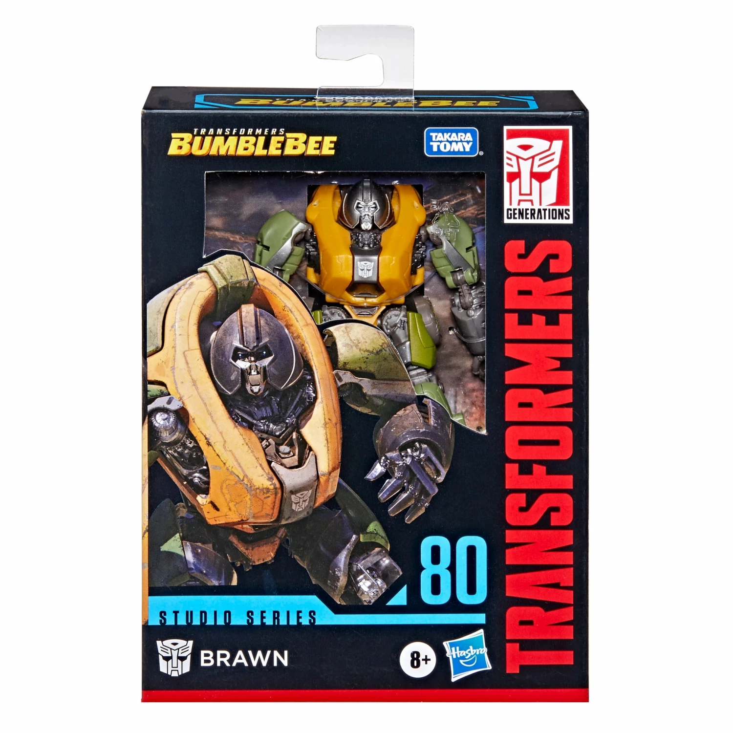 This Studio Series 80 Deluxe Class Transformers: Bumblebee-inspired Brawn figure converts from robot to Cybertronian off-road vehicle mode in 18 steps. Remove backdrop to showcase Brawn in the Cybertron Falls scene. In the Cybertron Falls scene from Transformers: Bumblebee, Brawn helps his Autobot allies hold the line against the Decepticons before being knocked by an enemy blast. Pose the figure out with the included drill and blaster accessories and imagine recreating this classic movie moment!