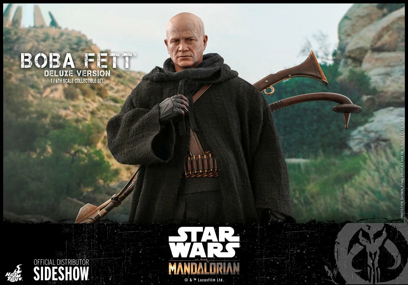 Sideshow and Hot Toys is elated to expand The Mandalorian collectible series and proudly presents the Boba Fett (Deluxe Version) Sixth Scale Collectible Set featuring the appearance of the formidable bounty hunter in a black robe and in his iconic armor!