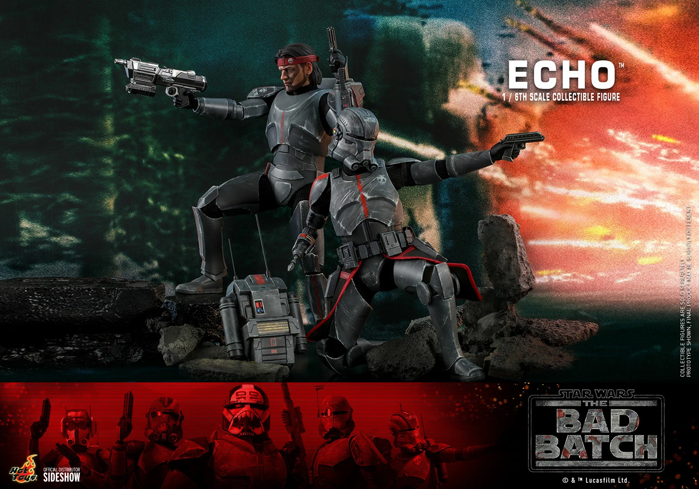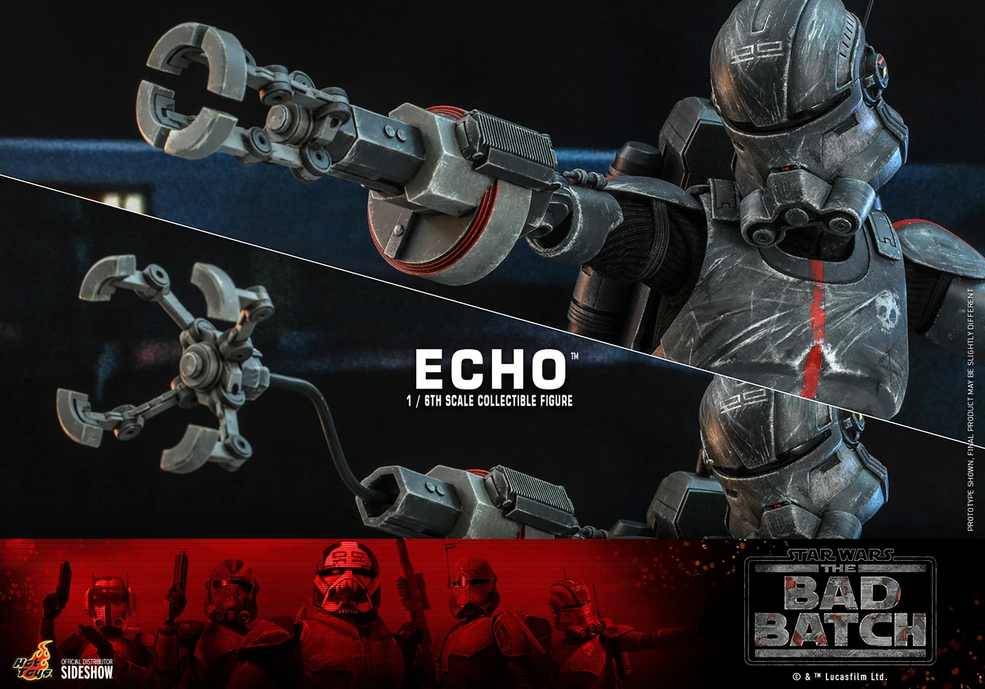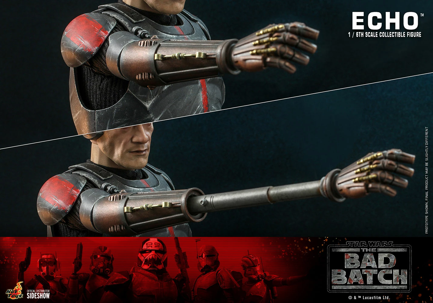 The highly accurate collectible figure features skillfully crafted and finely detailed recreation of Echo’s armor and helmet, interchangeable head sculpt with great likeness, the character’s unique cybernetic parts including a variety of interchangeable mechanical right arms, a military backpack, blaster, and a display base!