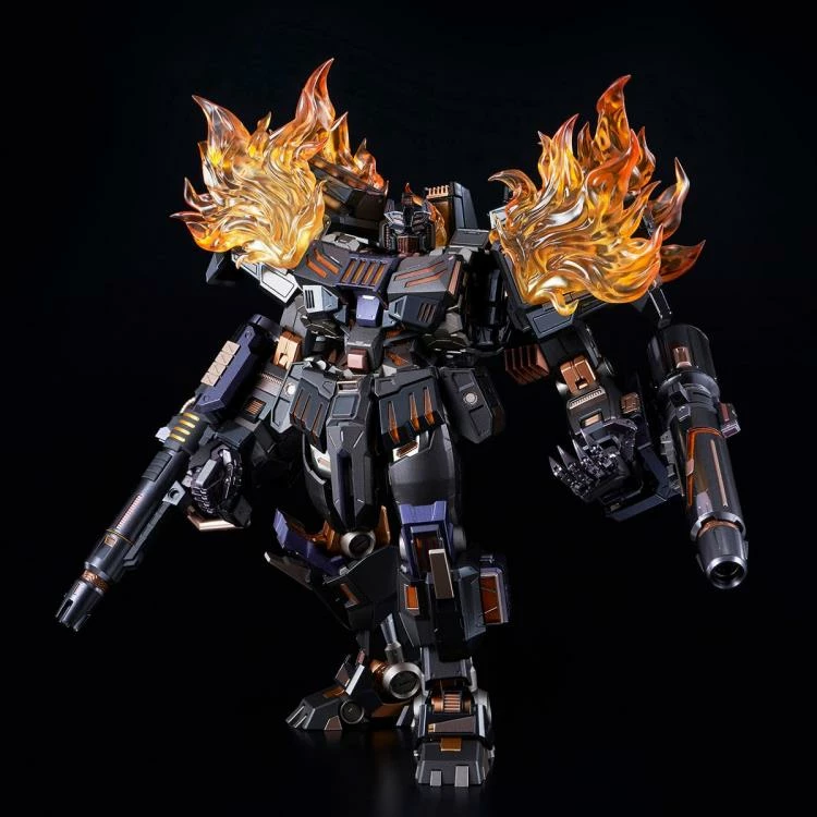 Joining the Kuro Kara Kuri line up is The Fallen, first known as Megatronus Prime! This figure of the first Decepticon stands around 8 inches tall and is made of iron, PVC, and features LED light-up units in the eyes, chest, shoulders, and legs. This set also includes 2 kinds of cannons that combine to become his signature Mega Cannon.
